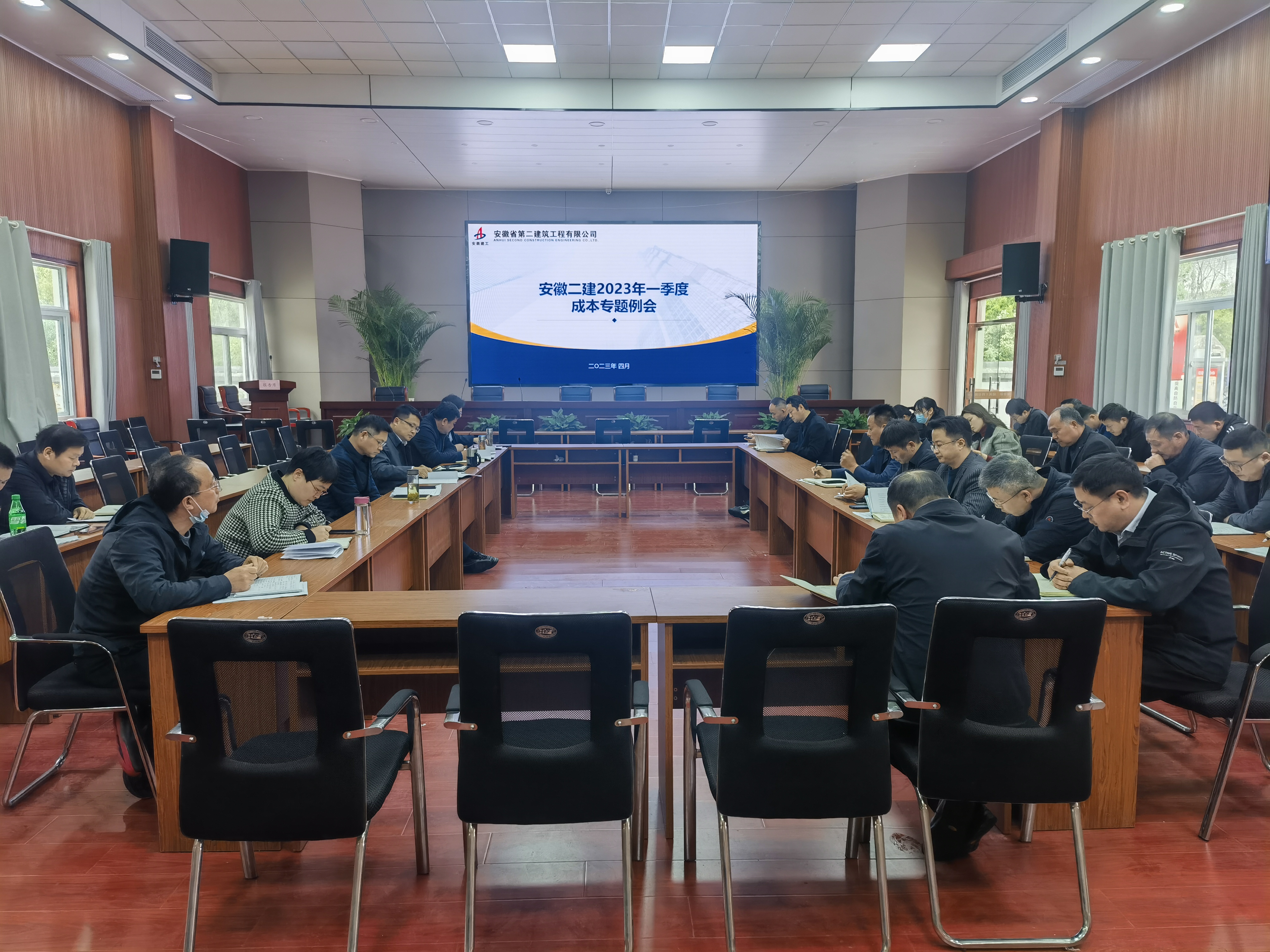4 月6日下午,安徽二建公司在新會議室召開了2023年一季度成本專題例會。公司黨委副書記、總經理李建成,黨委委員、副總經理葉和永出席會議,公司相關部門負責人、所屬各單位經理、分管領導、核算科長、物資科長及在肥項目項目經理參加會議,會議由黨委委員、副總經理、總工程師費勤波主持。