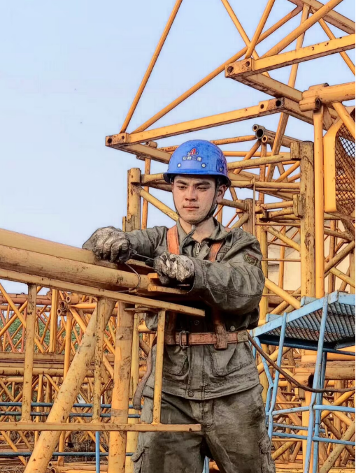 我是王飛虎,在安徽建工二建機械分公司黃栗基地設備租賃部任特種作業安拆工,這個“五一”為了安全及時完成塔吊的安拆、檢查工作,塔機起重臂和平衡臂是我的工作場所,針對塔吊安全檢查中反饋的問題及現場突發故障,及時排除存在的安全隱患及故障,確保設備運行安全、平穩、可靠。愿節日里每一位堅守崗位的勞動者節日快樂!