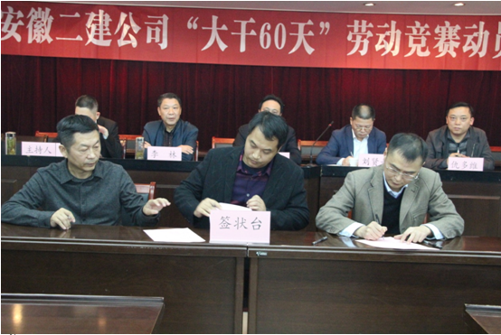 2017年已漸入歲末。為更好地全面完成年初公司既定各項經濟技術目標任務,在項目上掀起大干熱潮,安徽二建公司于11月6日下午,在原辦公樓三樓會議室召開“大干60天”勞動競賽動員會。公司領導及機關職能部門負責人、所屬各基層單位黨政一把手、公司在建20個自營項目負責人等60余人參加動員會。