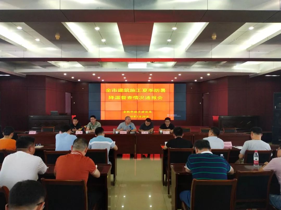 7月29日,合肥市城鄉建設局召開全市建筑施工夏季防暑降溫督查情況通報會,在會上合肥市建設局質量安全處解讀了國家、省廳、市安委辦及局有關高溫安全文件精神,通報近期全市建筑施工夏季防暑降溫督查情況,強調近期安全異常形勢,并就聯合懲戒提要求;并播放違規施工視頻、圖片亂象。