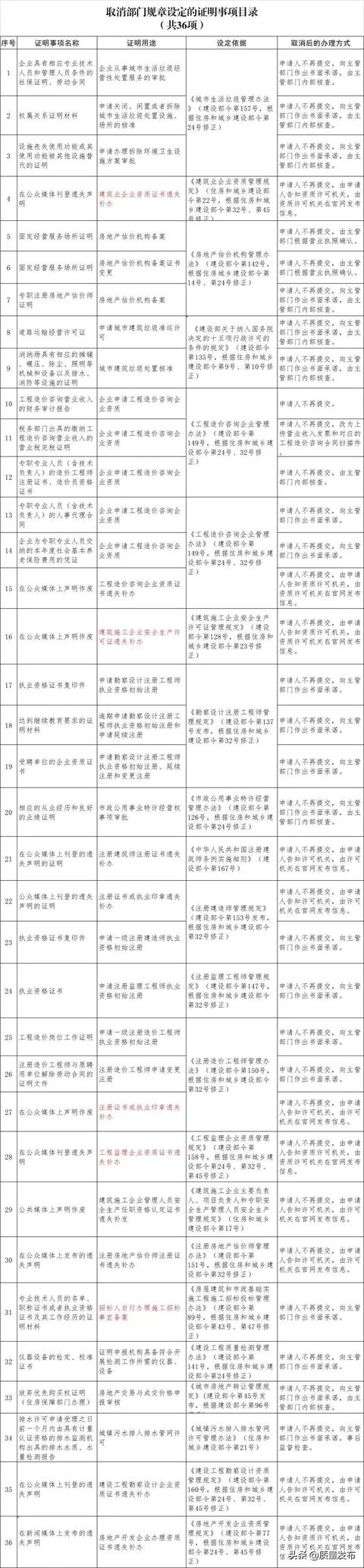 近日,住建部下發通知,自9月16日起,再取消一批證明事項,涉及資質、招標、執業資格證書等事項證明。