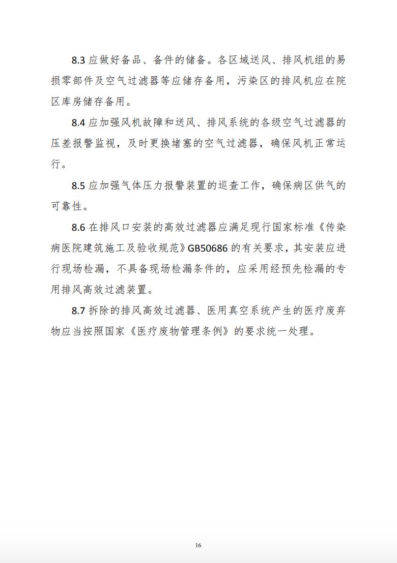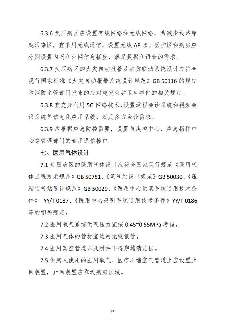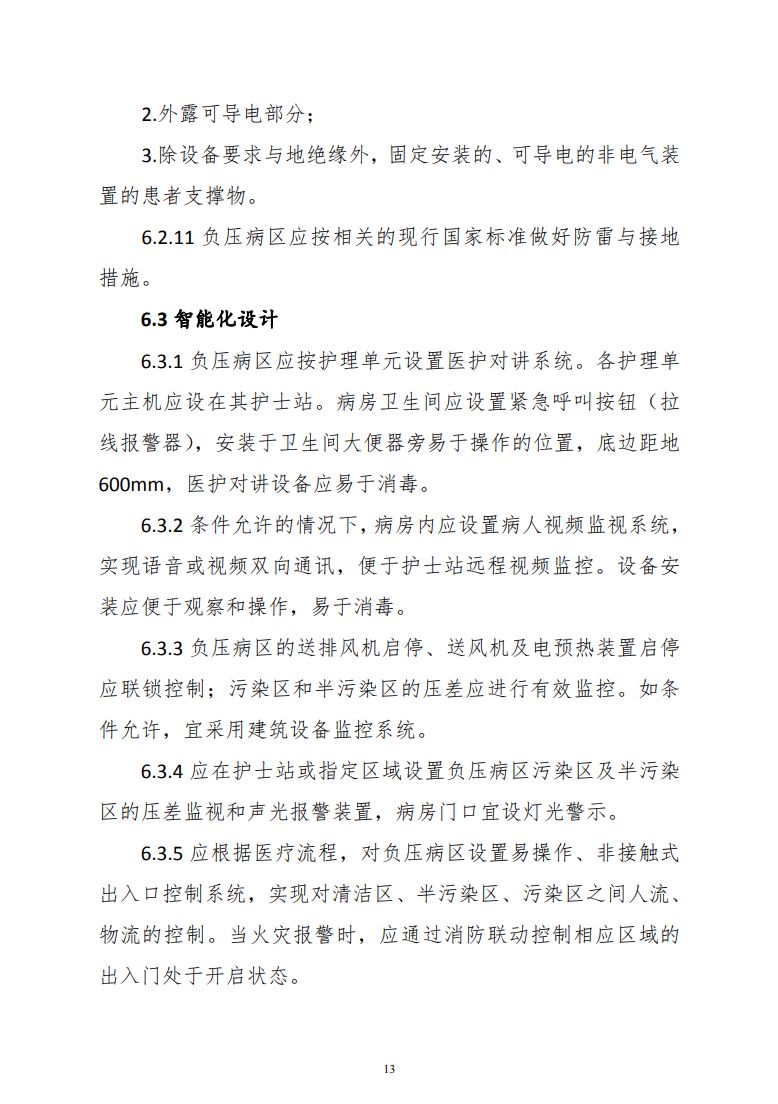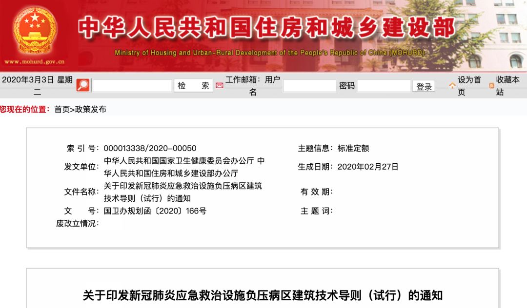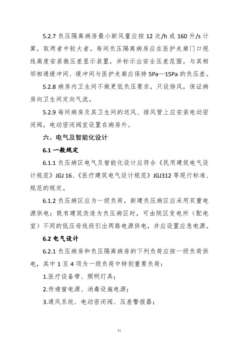 為進一步做好新冠肺炎疫情防控工作,加強新冠肺炎應急救治設施建設,國家衛健委辦公廳、住房和城鄉建設部辦公廳近日聯合印發《新冠肺炎應急救治設施負壓病區建筑技術導則(試行)》,供各地結合防疫工作和實際需要參考執行。導則包括建筑設計、結構設計、給水排水設計、供暖通風及空調設計、電氣及智能化設計、運行維護等8個方面。