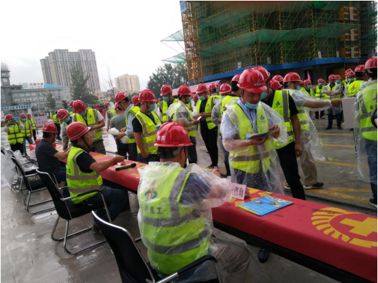 上午10點活動正式開始,總經理陸勤斌致辭并宣布勞動競賽啟動。副總經理葉和永任總指揮,開展了安全宣誓、安全承諾簽名、安全生產咨詢、應急救援演練、安全主題宣講等系列“安全生產月”宣傳教育活動。隨后,大家對淮北國金華府、恒基城安貞大廈、港利文庭雅苑三個項目現場進行了安全文明標準化觀摩,加強項目間的交流學習,總結亮點,查找不足,促進安全管理上水平、見成效。