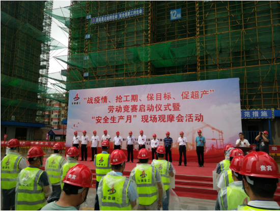 6月18日,安徽二建公司在淮北國金華府(紫麟苑)項目舉行“戰疫情、搶工期、保目標、促超產”勞動競賽啟動儀式及安全生產月系列宣傳教育活動。公司領導,工會、黨委工作部工程管理部、安全管理部、技術質量部部門負責人,所屬各單位主要領導、分管安全副經理、安全科長,項目經理及安員共二百余人參加,淮北市監管局及建設單位相關領導應邀參加了活動。