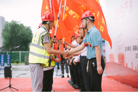 之后,公司工程管理部副主任丁光啟宣讀了2020年勞動(dòng)競(jìng)賽方案;總經(jīng)理助理、一分公司經(jīng)理崔書斌代表勞動(dòng)競(jìng)賽參賽單位進(jìn)行了宣誓;參加啟動(dòng)儀式的領(lǐng)導(dǎo)向參賽單位進(jìn)行授旗。最后,陸勤斌宣布安徽二建公司“戰(zhàn)疫情、搶工期、保目標(biāo)、促超產(chǎn)”勞動(dòng)競(jìng)賽正式開始。