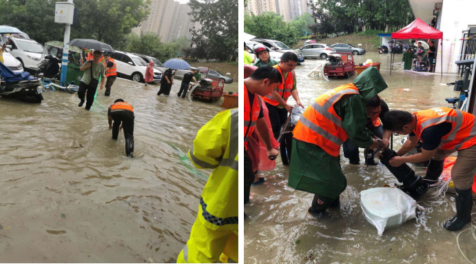 7月18日,合肥遭受77年一遇單日最大降雨。藍(lán)天公寓和大興鎮(zhèn)興泰苑出現(xiàn)內(nèi)澇,情況緊急,人民群眾生命財(cái)產(chǎn)安全遭受威脅,汛情就是戰(zhàn)斗令,二分公司接到指令,馬上組建30余人的抗洪突擊隊(duì),緊急調(diào)運(yùn)大功率水泵2臺(tái),配電箱2個(gè),80米電線電纜,300米水管等防汛物資,20分鐘極速趕到抗洪前線。現(xiàn)場有的架設(shè)水泵、有的鋪設(shè)電纜、有的配合抽水排澇,分工明確、爭分奪秒。經(jīng)過數(shù)小時(shí)的緊急救援,至凌晨,災(zāi)情得到有效控制。奮戰(zhàn)了8個(gè)小時(shí)的志愿者們才撤出前線。