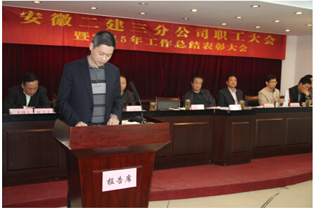 分公司葉和永經理在經理報告中圍繞“全面貫徹黨的十八大、十八屆三中、四中、五中全會精神,深入落實集團首屆職代會精神及二建公司十五屆三次職代會精神,以及“基礎管理提升年”為主導思想提出“推進從嚴管理;開創(chuàng)科學發(fā)展新篇章;實施精細管理;全面完成既定新目標”的分公司工作主導思想。并在會上作《推進從嚴管理開創(chuàng)科學發(fā)展新篇章實施精細管理全面完成既定新目標》的報告,報告肯定了過去一個時期的工作成果,并在立足市場、客觀分析的基礎上,明晰契合自身的發(fā)展思路、全面部署下一步各項工作。